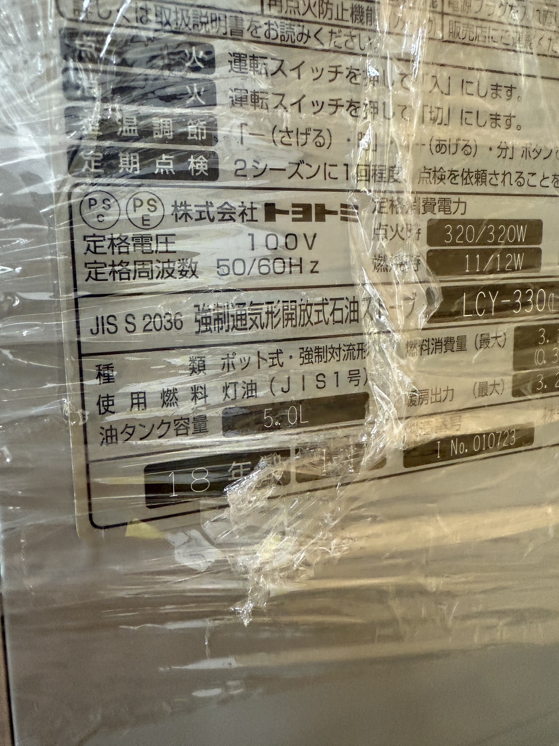 トヨトミ 石油ストーブ 5.0L LCY-330 2018年製 #1867