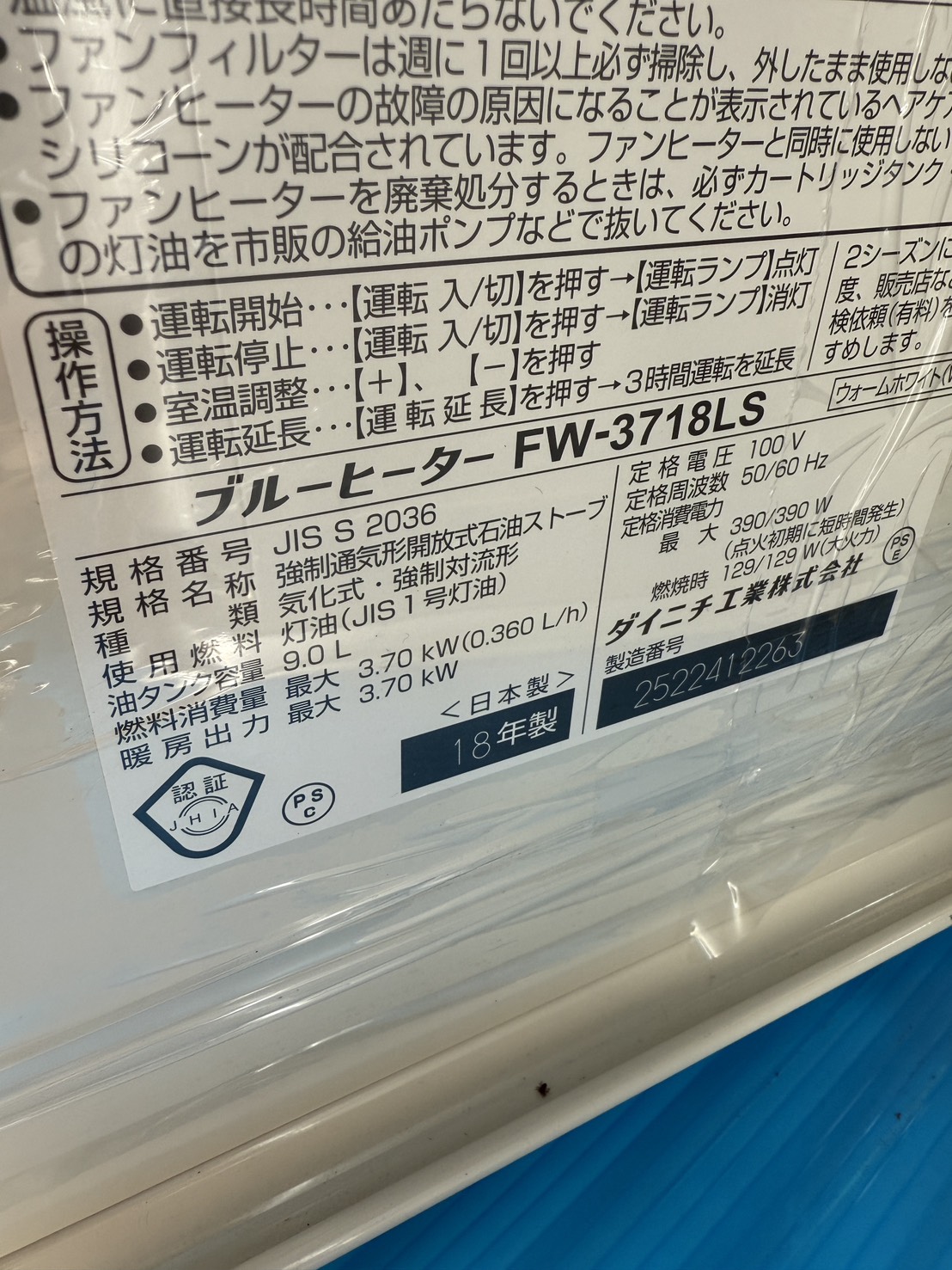 ダイニチ 石油ストーブ 9.0L FW-3718LS 2018年製