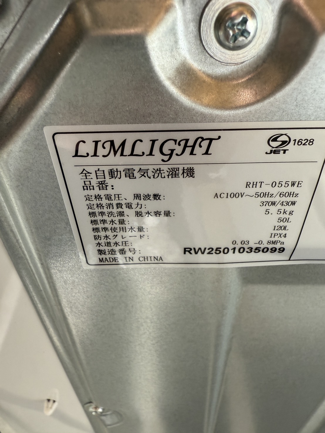リムライト 洗濯機 5.5㎏ RHT-055WE 2025年製 #1805