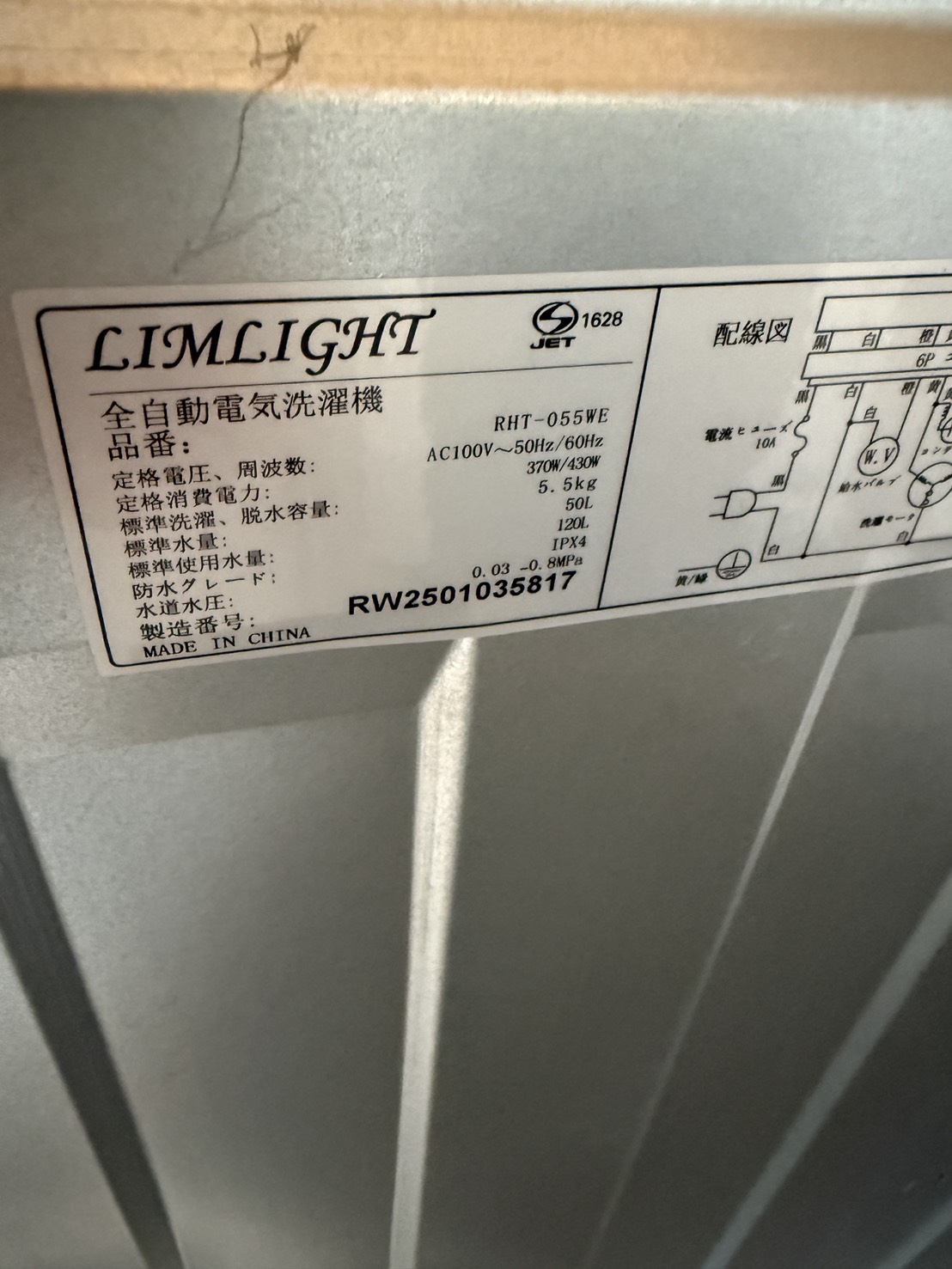 リムライト 洗濯機 5.5㎏ RHT-055WE 2025年製 定価14800円 #1835