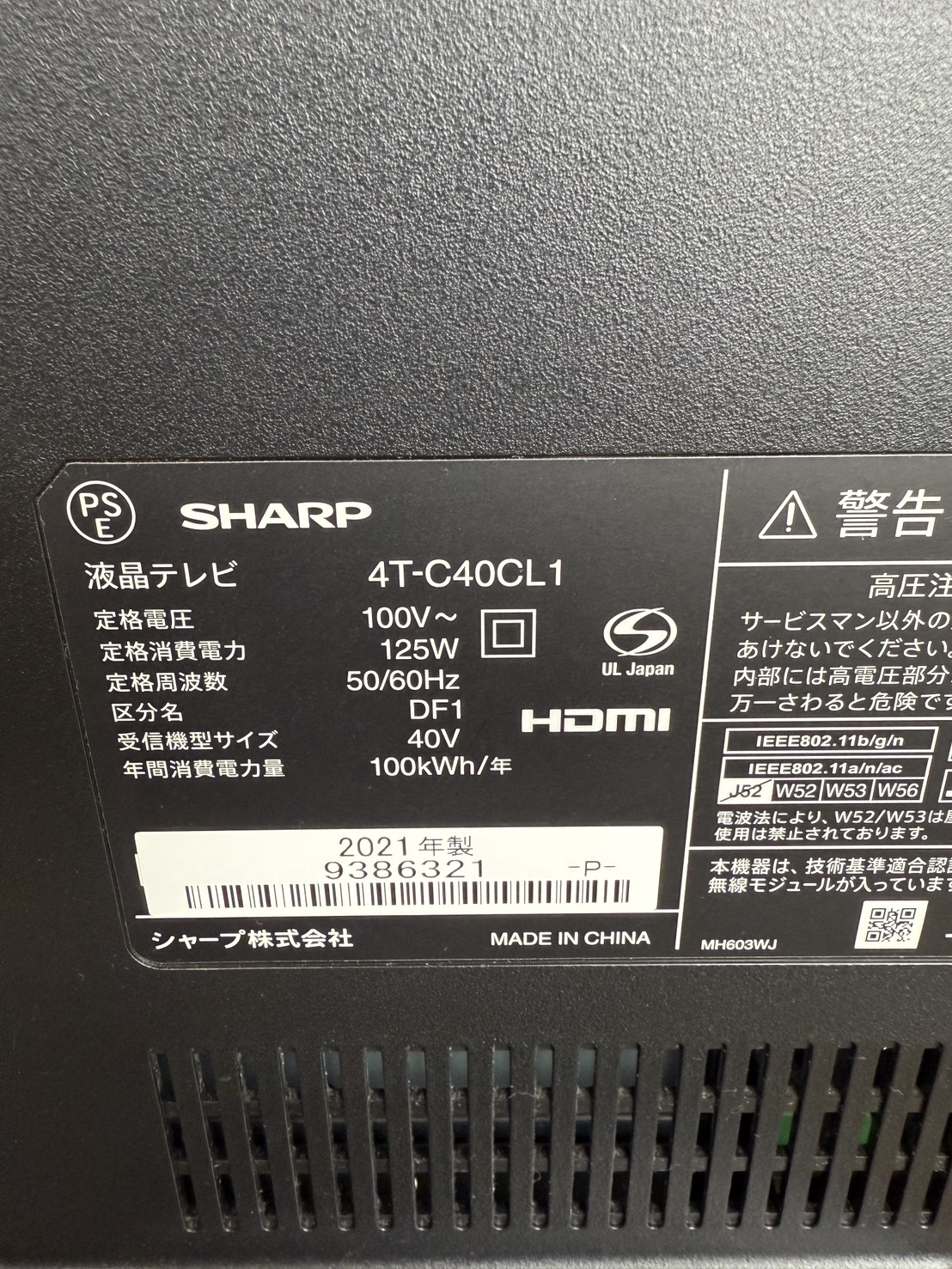 SHARP AQUOS 4K液晶TV 40型 4TーC40CL1 2021年製 #1840