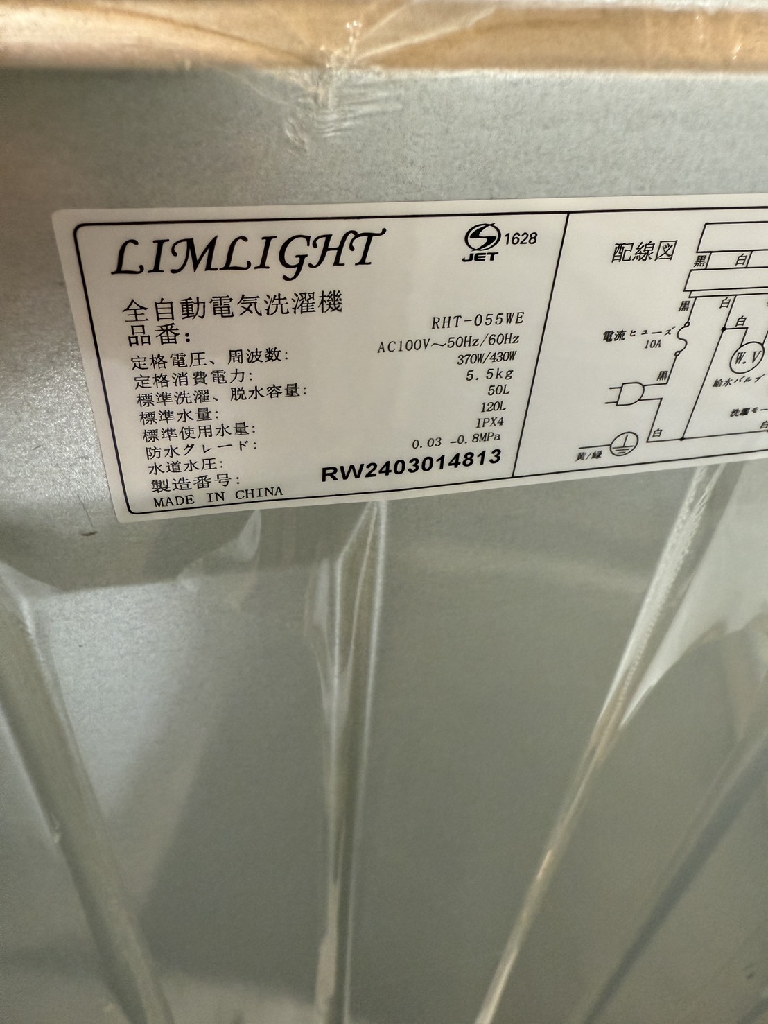 リムライト 洗濯機 5.5㎏ RHT-055WE 2024年製 #1848