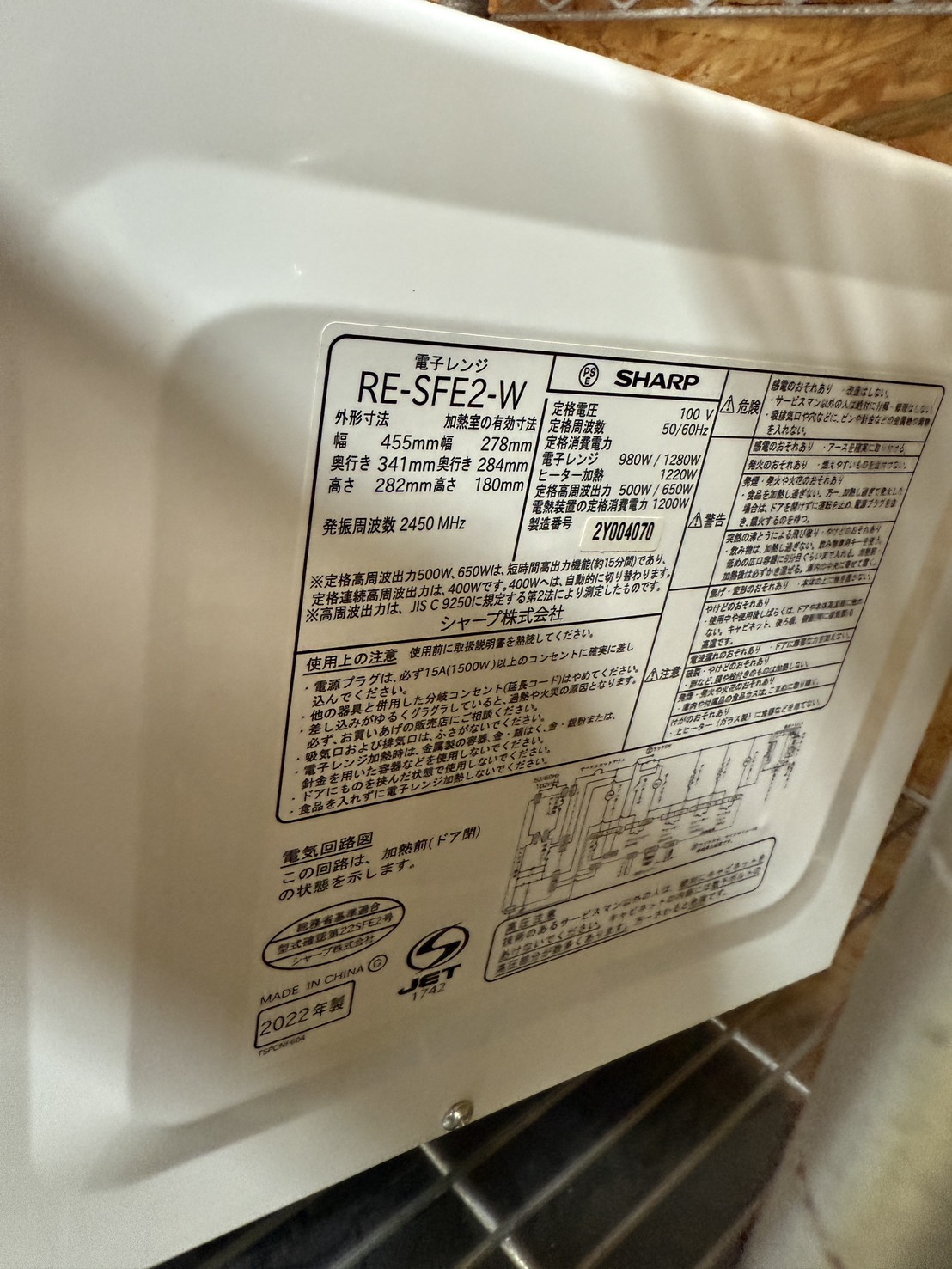 SHARP 電子レンジ RE-SFE2-W 2022年製