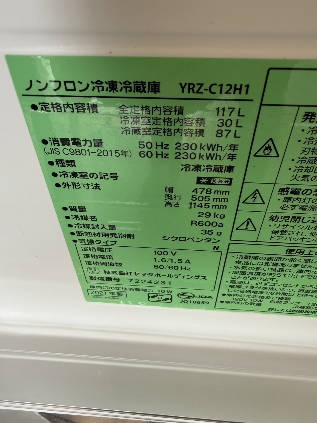 ヤマダホールディングス 冷蔵庫 117L YRZ-C12H1  2021年製 #1906