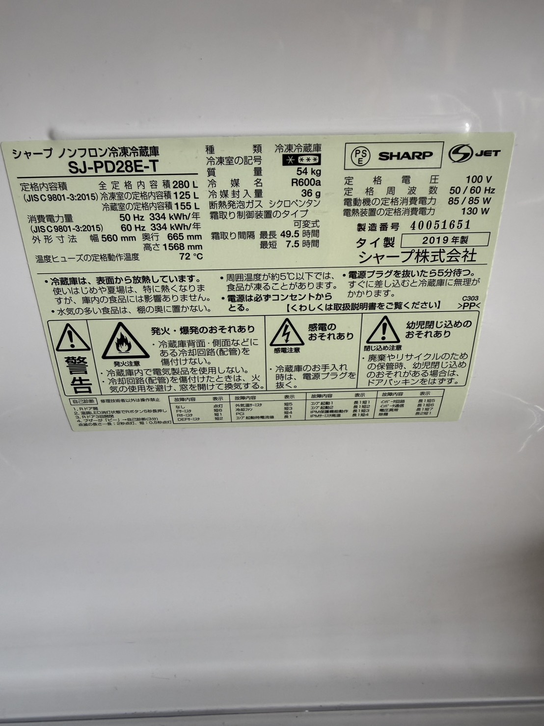 SHARP 冷蔵庫 280L SJ-PD28E-T 2019年製 #1923